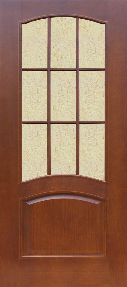 Отделка полотна: натуральный шпон дуба, двухкомпонентный полиуретановый лак Цвет: Темный орех Стекло: Бронза Рифленое Каркас полотна: брус хвойных пород Внутреннее заполнение: МДФ Багет: массив дуба Толщина: 40 мм Размеры полотен: 1900*500, 1900*600, 200*400, 2000*600, 2000*700, 2000*800, 2000*900 мм