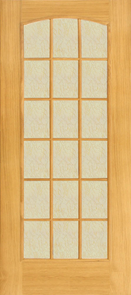 Отделка полотна: натуральный шпон дуба, двухкомпонентный полиуретановый лак Цвет: Дуб натуральный Стекло: Бронза Рифленое Каркас полотна: брус хвойных пород Внутреннее заполнение: МДФ Багет: массив дуба Толщина: 40 мм Высота: 2000 мм Ширина: 400, 600, 700, 800, 900 мм
